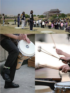 子供からお年寄りまで、まさに「一期一会」の空間でリズムに合わせて手をたたく!おどる!大人数の心が一つとなった瞬間に奏でられる音。平城遷都の太古から未来に響くパーカッションのリズムはきっと忘れられないものとなるでしょう。