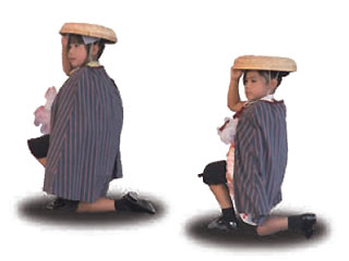 イスに座って軽快にタップが始まる。肩やひざをたたいたかと思えば、帽子をたたき、頭をふれば帽子についた鈴が鳴る。目の前のお兄さん、お姉さんのコミカルな動きに、集まった小学生たちからも笑い声が聞こえた。